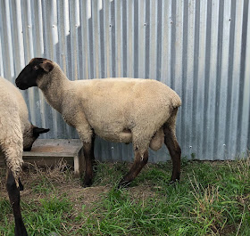Then recently I saw a post on facebook offering two young rams for sale. They're two out of a set of triplets, purebred Suffolk and fine looking boys. I did some quick research about the Suffolk breed. Good hardy sheep, mostly meat producers and their wool is approximately mid-range for fineness, rating better than Romney. I enquired, we chatted and a week later, Lenny arrived.